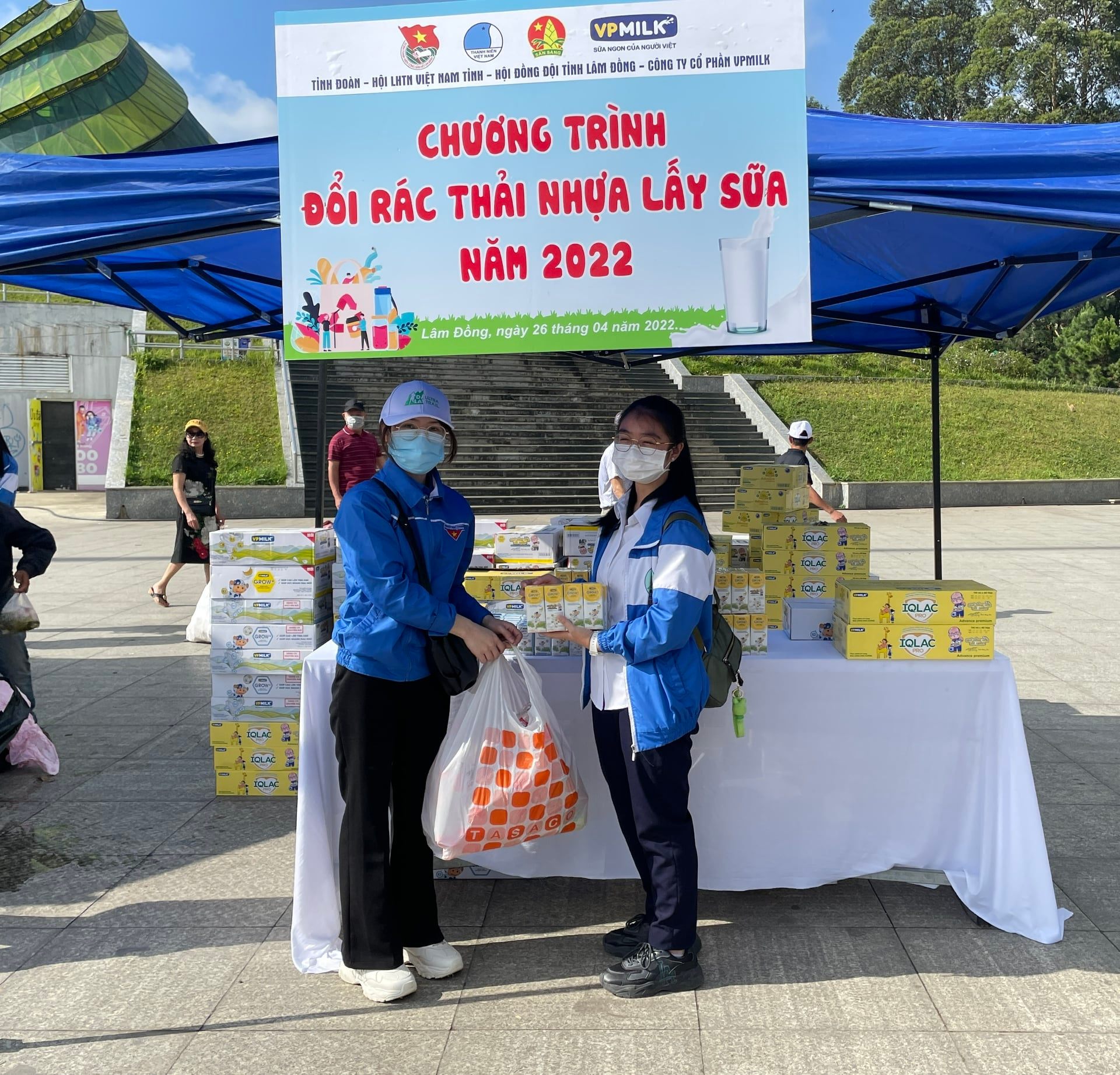 ĐTN: Sáng ngày 26/4/2022, tại quảng trường Lâm Viên thành phố Đà Lạt, Tỉnh đoàn - Hội LHTN Việt Nam tỉnh - Hội đồng Đội tỉnh phối hợp với Công ty Cổ phần VPMilk Lâm Đồng tổ chức Chương trình đổi rác thải nhựa lấy sữa.