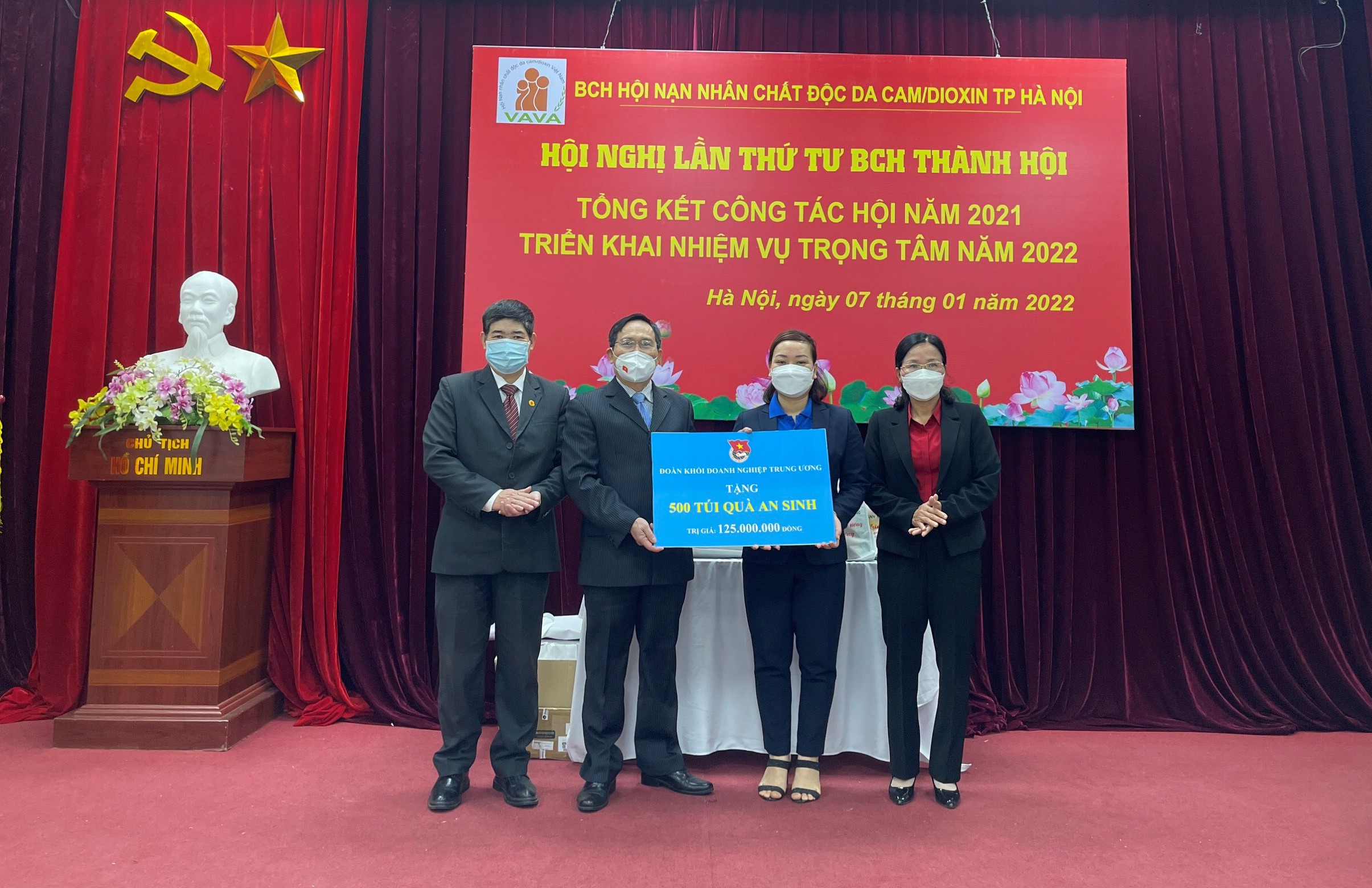 ĐTN: Sáng 07/01, đồng chí Trần Thị Ngọc Quỳnh - Phó Bí thư Đoàn Khối Doanh nghiệp Trung ương cùng đoàn công tác đại diện Đoàn Khối đã tới thăm và trao biển hỗ trợ 500 túi quà an sinh cho các nạn nhân của Hội Nạn nhân Chất độc màu da cam/Dioxin thành phố Hà Nội tại 10 quận, huyện trên địa bàn thủ đô.