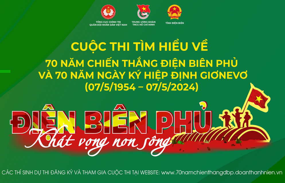 ĐTN: Ngày mai (22/12), T.Ư Đoàn, Tổng cục Chính trị QĐND Việt Nam và tỉnh Điện Biên sẽ phát động Cuộc thi tìm hiểu 70 năm Chiến thắng Điện Biên Phủ và 70 năm ngày ký Hiệp định Giơ-ne-vơ về đình chỉ chiến sự ở Việt Nam với chủ đề "Điện Biên Phủ - Khát vọng non sông".