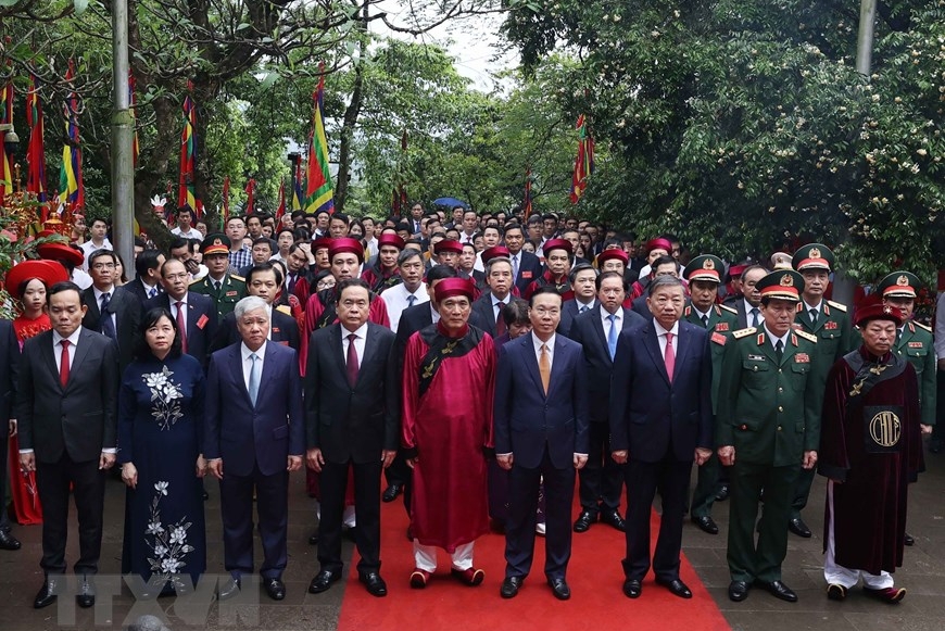Sáng 29/4 (tức mùng 10 tháng 3 âm lịch), Chủ tịch nước Võ Văn Thưởng cùng lãnh đạo Đảng, Nhà nước, các bộ, ngành, địa phương và tỉnh Phú Thọ dâng hương giỗ Tổ Hùng Vương tại Khu di tích lịch sử Đền Hùng.
