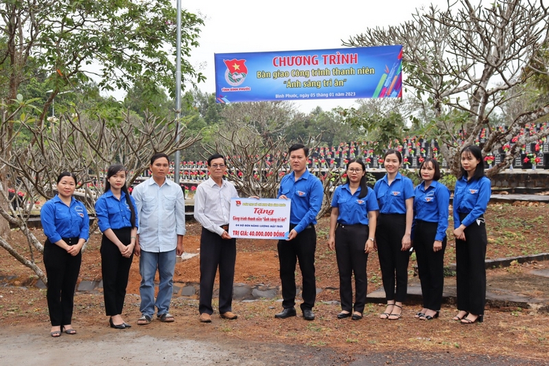 ĐTN: Ngày 05/01, Tỉnh Đoàn Bình Phước đã tổ chức lễ viếng và bàn giao công trình thanh niên “Ánh sáng tri ân” tại Nghĩa trang Liệt sỹ tỉnh cho Sở Lao động, Thương binh và Xã hội tỉnh.