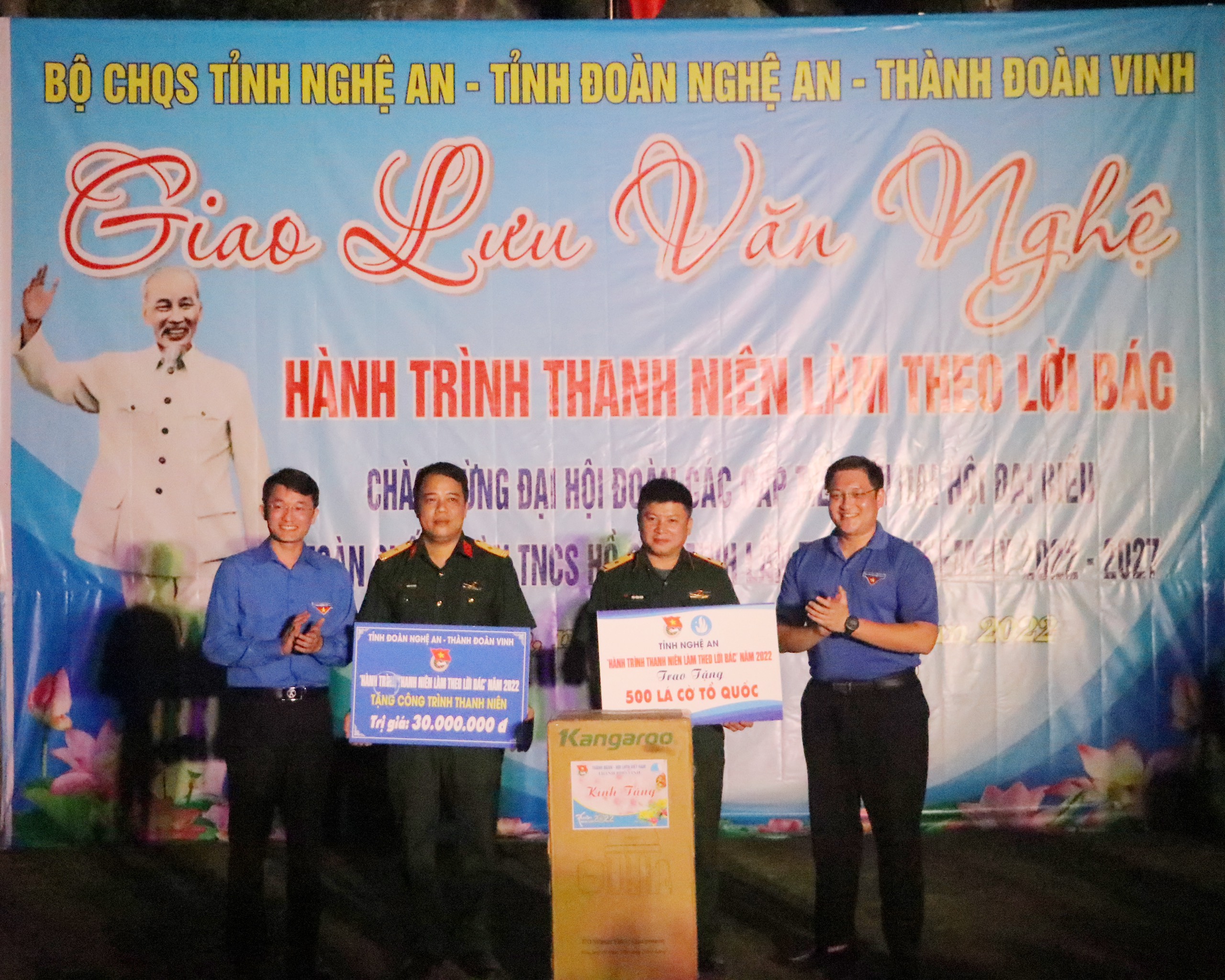 ĐTN: Vượt hàng chục hải lý ra với cán bộ, chiến sỹ Tiểu đoàn hỗn hợp Đảo Mắt, trong 2 ngày 18-19/2022, Tỉnh đoàn, Hội Sinh viên tỉnh Nghệ An phối hợp với Bộ chỉ huy Quân sự tỉnh, Thành đoàn Vinh tổ chức “Hành trình Thanh niên làm theo lời Bác” năm 2022.