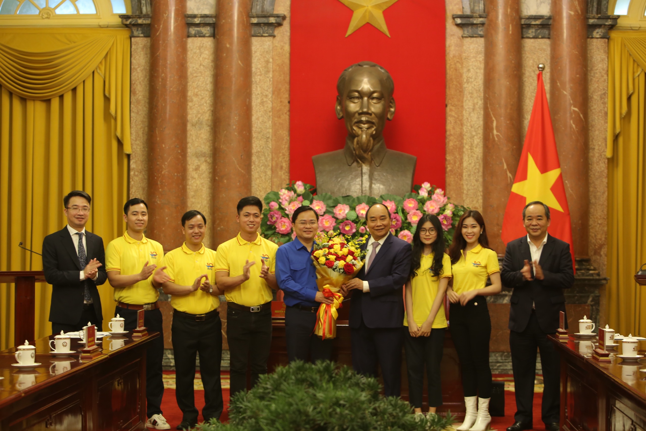 ĐTN: Sáng 26/3, tại Phủ Chủ tịch, Chủ tịch nước Nguyễn Xuân Phúc đã gặp mặt các gương mặt trẻ Việt Nam tiêu biểu, gương mặt trẻ Việt Nam triển vọng năm 2021.