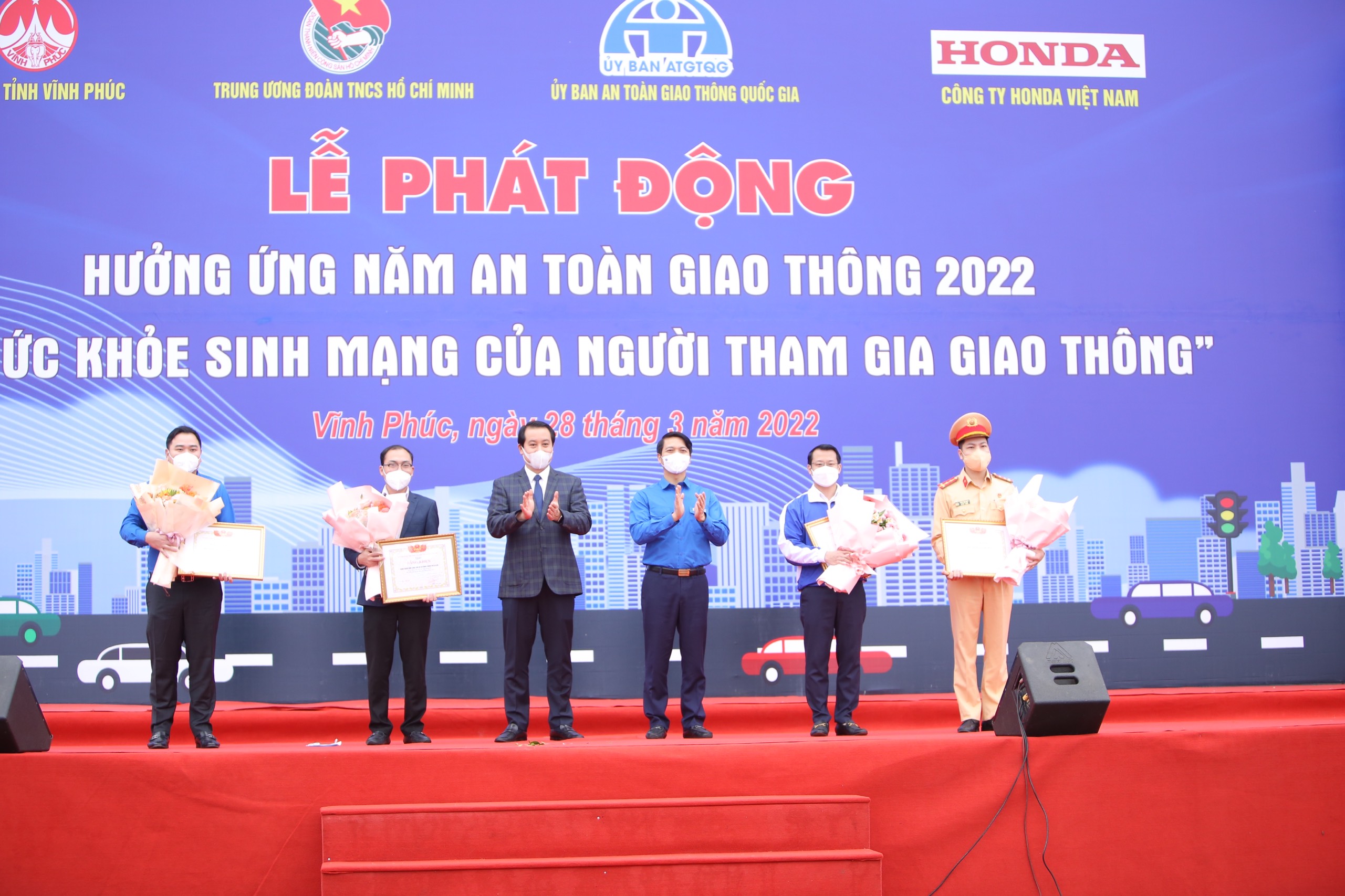 ĐTN: Ngày 28/3, tại tỉnh Vĩnh Phúc, Trung ương Đoàn TNCS Hồ Chí Minh phối hợp với Ủy ban An toàn giao thông Quốc gia, Tỉnh ủy, Ủy ban Nhân dân tỉnh Vĩnh Phúc và Công ty Honda Việt Nam đã tổ chức Lễ phát động hưởng ứng Năm an toàn giao thông 2022 với chủ đề “Vì sức khỏe, sinh mạng của người tham gia giao thông”.