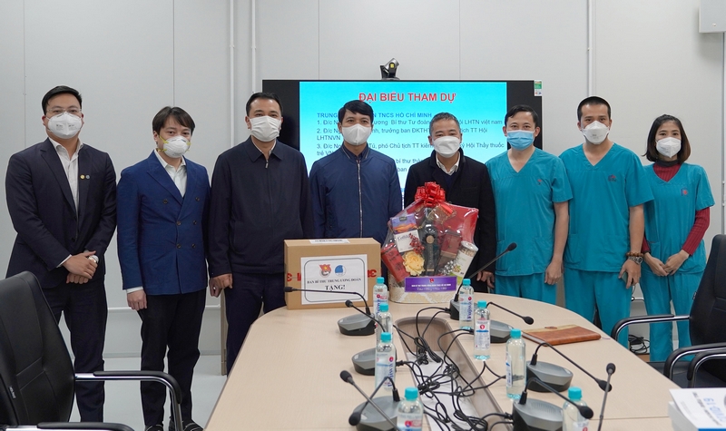 ĐTN: Sáng 31/01 (tức 29 tết), đồng chí Nguyễn Ngọc Lương, Bí thư T.Ư Đoàn, Chủ tịch Hội LHTN Việt Nam dẫn đầu đoàn công tác đã đến thăm, chúc tết, tặng quà các y bác sĩ đang làm nhiệm vụ xuyên Tết tại Bệnh viện điều trị người bệnh Covid-19 trực thuộc Bệnh viện ĐH Y Hà Nội,.