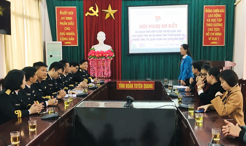 Web.ĐTN: Ngày 24/12, Ban Thường vụ Tỉnh đoàn phối hợp với Phòng Công tác quần chúng Hải quân tổ chức Hội nghị sơ kết kế hoạch phối hợp tuyên truyền biển đảo giữa Đoàn TNCS Hồ Chí Minh tỉnh Tuyên Quang và Ban Thanh niên Quân chủng hải quân năm 2020.