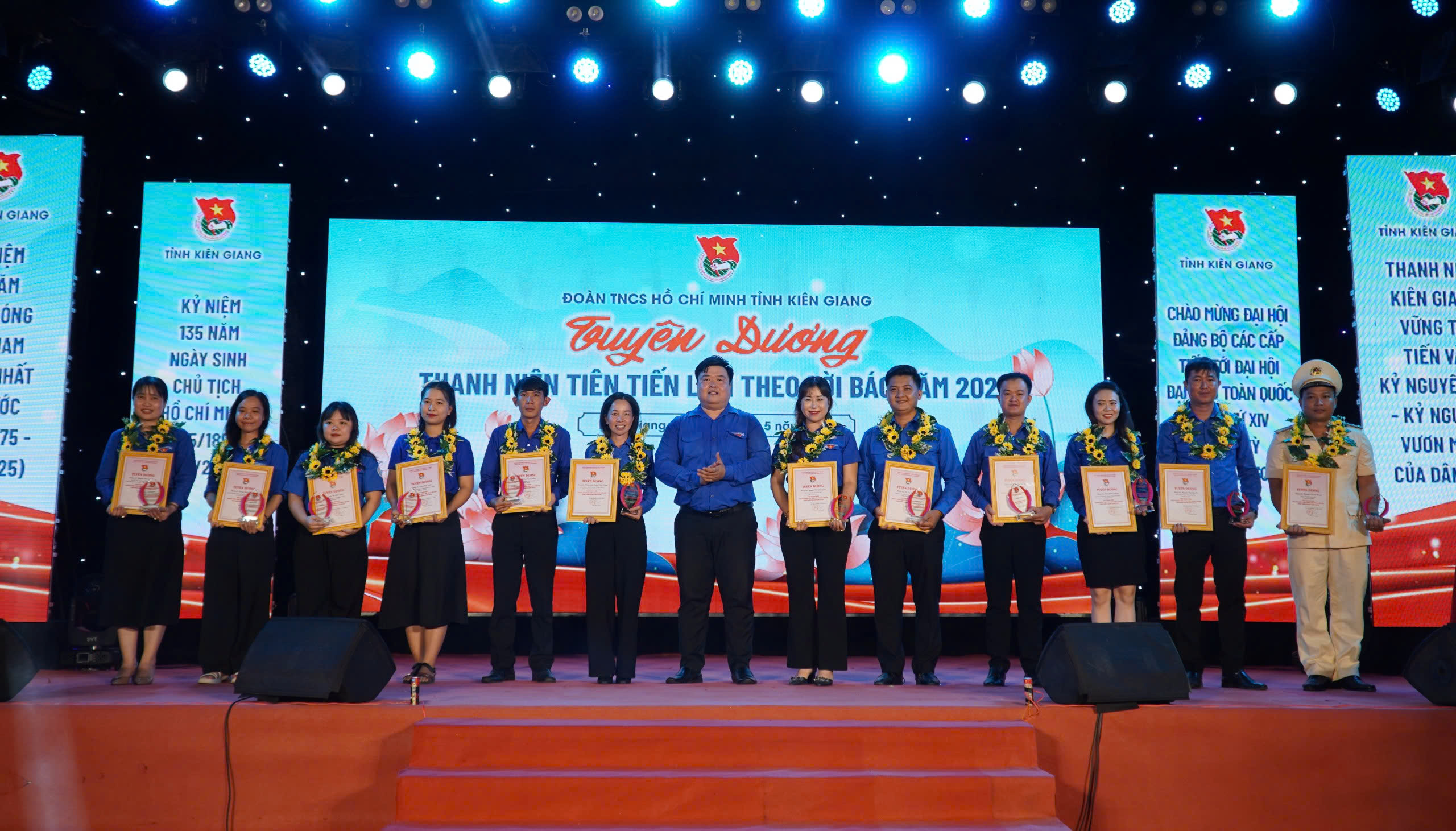 ĐTN: Hướng đến kỷ niệm 135 năm Ngày sinh Chủ tịch Hồ Chí Minh, tối ngày 9/5, tại Công viên văn hóa 1/5 huyện Vĩnh Thuận, Tỉnh đoàn Kiên Giang tổ chức chương trình tuyên truyền ca khúc cách mạng gắn với Tuyên dương Thanh niên tiên tiến làm theo lời Bác tỉnh Kiên Giang năm 2025; Tuyên dương Gương mặt trẻ tiêu biểu, Đảng viên trẻ tiêu biểu, Cán bộ đoàn tiêu biểu tỉnh Kiên Giang năm 2024.