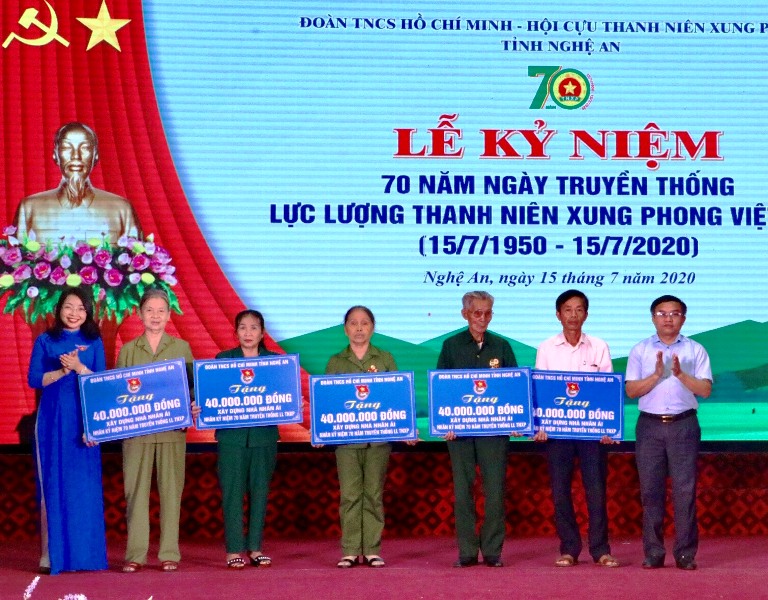Web.ĐTN: Sáng 15/7, Ban Thường vụ Tỉnh Đoàn tổ chức Chương trình Họp mặt Kỷ niệm 70 năm ngày truyền thống lực lượng thanh niên xung phong Việt Nam (15/7/1950-15/7/2020) và trao tặng huy hiệu Cựu Thanh niên xung phong làm theo lời Bác, tặng quà cho Cựu thanh niên xung phong là thương binh, nhiễm chất độc hóa học, có hoàn cảnh khó khăn.