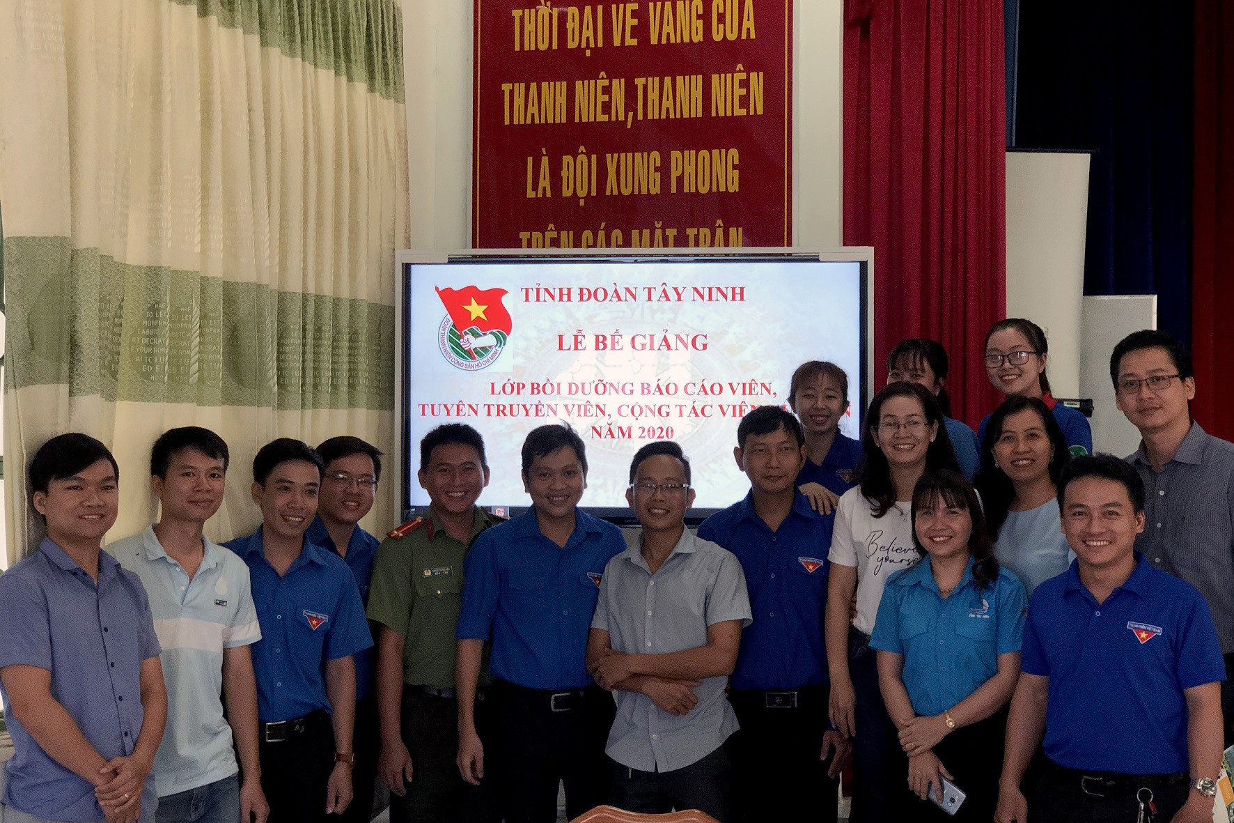 Web.ĐTN: Ngày 5/7, Tỉnh đoàn Tây Ninh phối hợp cùng Trường đoàn Tây Ninh tổ chức bế giảng lớp tập huấn nghiệp vụ báo cáo viên, tuyên truyền viên, cộng tác viên dư luận xã hội năm 2020. Lớp tập huấn là một trong những giải pháp góp phần nâng cao hiệu quả công tác tuyên truyền và nắm bắt dư luận xã hội của các tổ chức Đoàn từ tỉnh đến cơ sở.