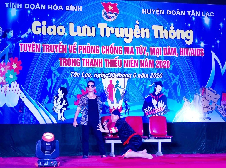 Web.ĐTN: Tối 30/6, Tỉnh đoàn Hòa Bình đã phối hợp với huyện đoàn Tân Lạc tổ chức chương trình giao lưu truyền thông tuyên truyền về phòng chống ma túy, mại dâm, HIV.AIDS trong thanh thiếu niên năm 2020 tại xã Phú Cường, huyện Tân Lạc.