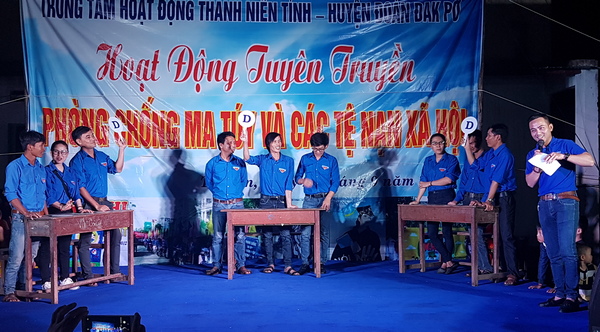 Web.ĐTN: Trung tâm hoạt động thanh thiếu niên tỉnh vừa phối hợp với Đoàn TN huyện Đăk Pơ tổ chức hoạt động tuyên truyền về phòng chống ma túy và các tệ nạn xã hội cho ĐVTN và nhân dân xã Tân An huyện Đăk Pơ.
