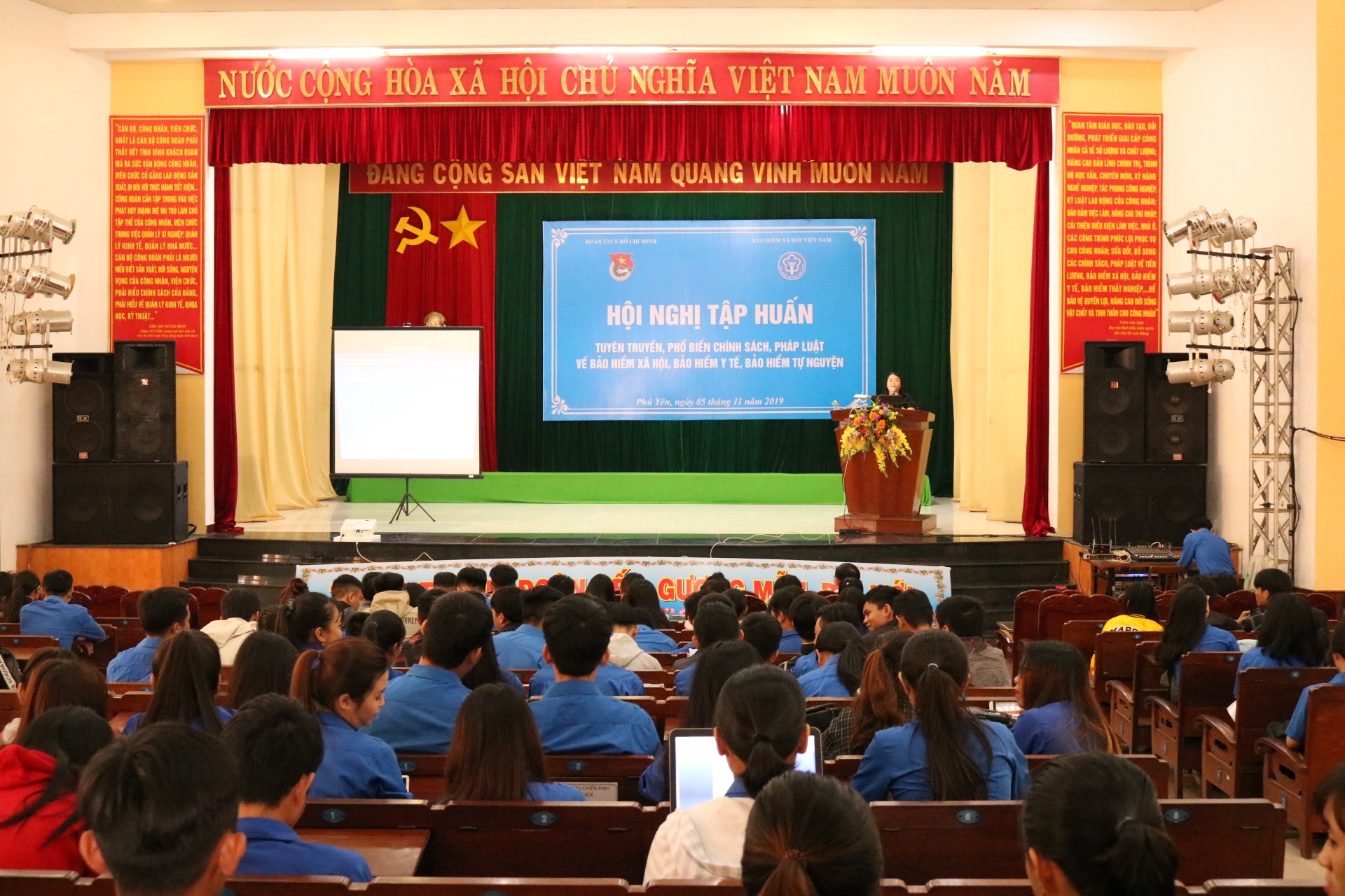 Web.ĐTN: Sáng 5/11, Trung ương Đoàn, Bảo hiểm xã hội Việt Nam, Tỉnh Đoàn Phú Yên, Bảo hiểm xã hội tỉnh tổ chức tập huấn, tuyên truyền, phổ biến chính sách, pháp luật về Bảo hiểm xã hội, Bảo hiểm y tế, Bảo hiểm tự nguyện cho hơn 400 đoàn viên, thanh niên, học sinh, sinh viên trên địa bàn tỉnh.