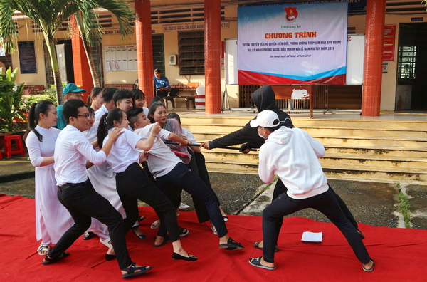 Web.ĐTN: Sáng 28/10, BTV Tỉnh đoàn Long An tổ chức hoạt động tuyên truyền phòng, chống tội phạm mua bán người; kỹ năng phòng ngừa, đấu tranh với tệ nạn ma túy cho cán bộ đoàn, đoàn viên, thanh niên năm 2019 tại huyện Tân Hưng. Hơn 630 đoàn viên, học sinh Trường THPT Tân Hưng tham gia chương trình.