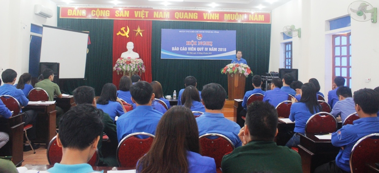 Web.ĐTN: Ngày 24/10, Tỉnh đoàn Hà Tĩnh tổ chức Hội nghị báo cáo viên quý IV, năm 2018 nhằm tuyên truyền, quán triệt chiến lược bảo vệ Tổ quốc trong tình hình mới; thông tin về tình hình thời sự, chính trị trong tỉnh, trong nước và quốc tế; tuyên truyền về công tác dân số, KHHGĐ; định hướng công tác tuyên truyền trong thời gian tới.