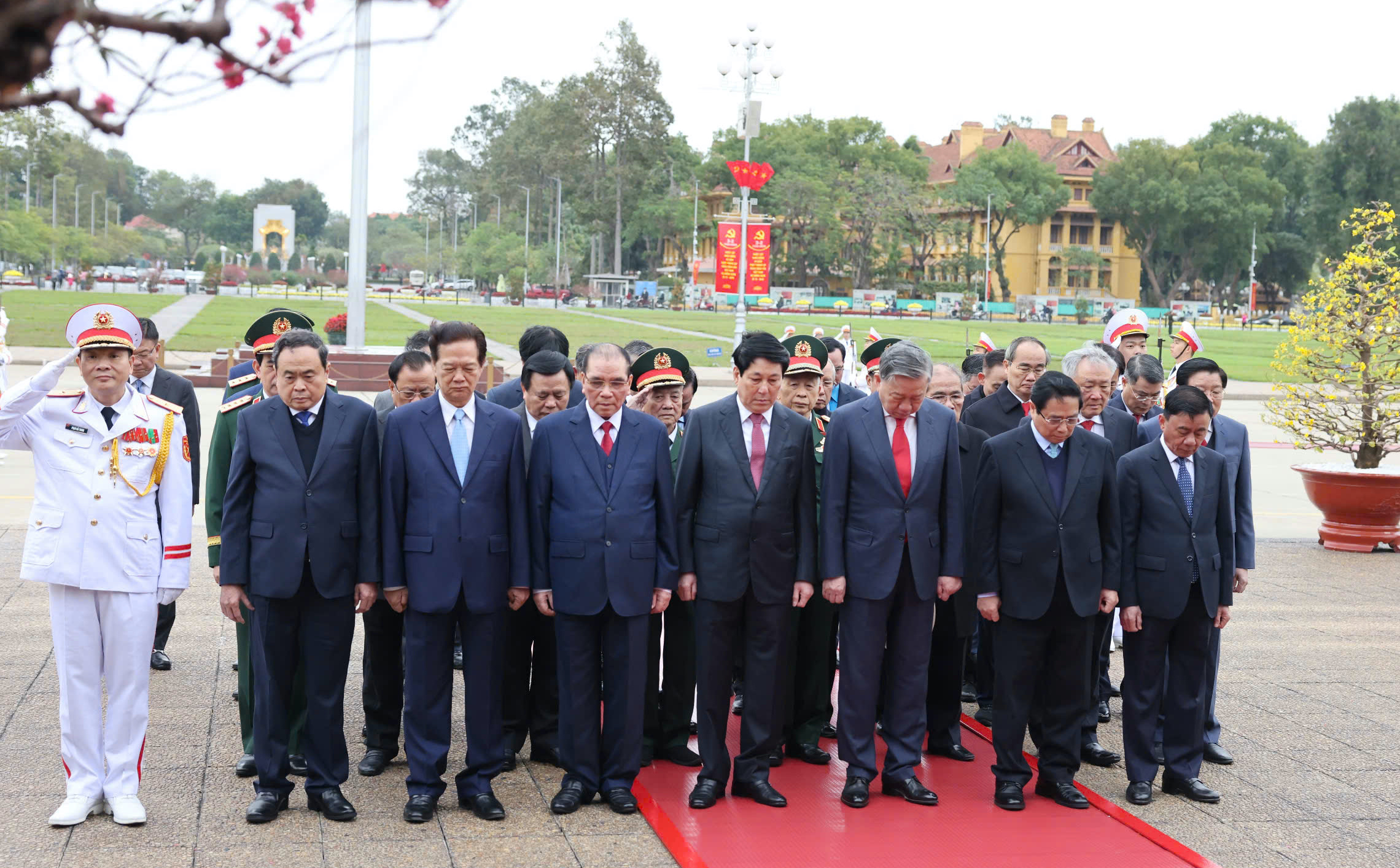Sáng 3/2/2025, nhân 95 năm Ngày thành lập Đảng Cộng sản Việt Nam (3/2/1930 - 3/2/2025), lãnh đạo, nguyên lãnh đạo Đảng, Nhà nước, Mặt trận Tổ quốc Việt Nam cùng đoàn đại biểu các bộ, ngành Trung ương và thành phố Hà Nội đến đặt vòng hoa và vào Lăng viếng Chủ tịch Hồ Chí Minh.