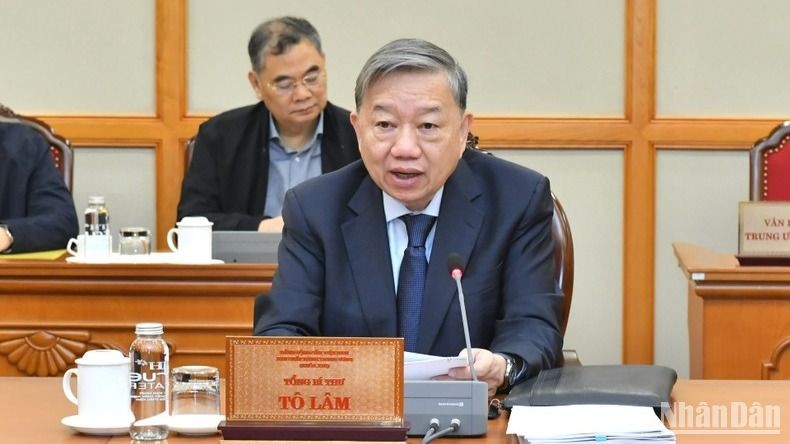 “Thời điểm bắt đầu kỷ nguyên mới là Đại hội XIV của Đảng, từ đây, mọi người dân Việt Nam, trăm triệu người như một, dưới sự lãnh đạo của Đảng, đoàn kết nhất trí, chung sức đồng lòng, tranh thủ tối đa thời cơ, thuận lợi, đẩy lùi nguy cơ, thách thức, đưa đất nước phát triển toàn diện, mạnh mẽ, bứt phá và cất cánh”, Tổng Bí thư Tô Lâm nhấn mạnh thông điệp.