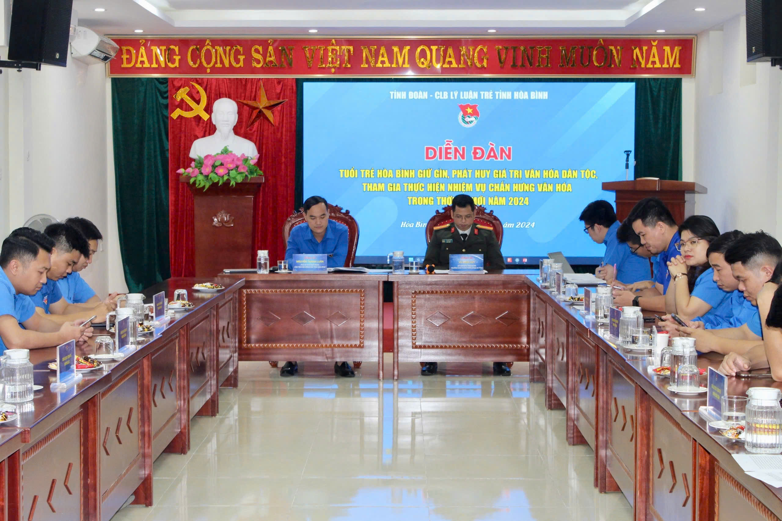 ĐTN: Chiều 18/11, tại Hội trường Tỉnh đoàn Hòa Bình, CLB Lý luận trẻ tỉnh Hòa Bình đã tổ chức Diễn đàn "Tuổi trẻ Hòa Bình giữ gìn, phát huy giá trị văn hóa dân tộc, tham gia thực hiện nhiệm vụ chấn hưng văn hóa trong thời kỳ mới" năm 2024.