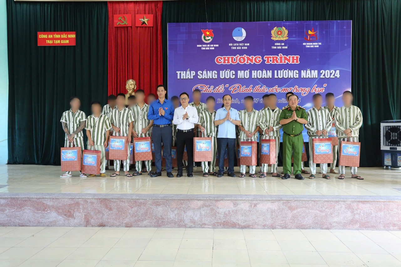 ĐTN: Ngày 27/8, tại Trại tạm giam Công an tỉnh Bắc Ninh (thị xã Quế Võ, tỉnh Bắc Ninh), Tỉnh Đoàn, Hội Liên hiệp thanh niên Việt Nam tỉnh Bắc Ninh phối hợp với Công an tỉnh Bắc Ninh và Hội Doanh nhân trẻ tỉnh tổ chức chương trình "Thắp sáng ước mơ hoàn lương" năm 2024 với chủ đề: "Đánh thức ước mơ trong bạn" cho các phạm nhân trong độ tuổi thanh niên.