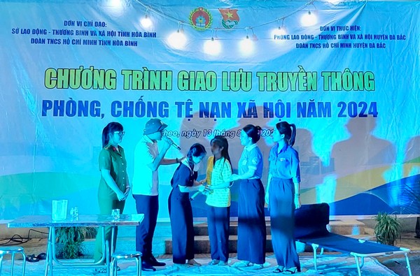 ĐTN: Tối 13/8, tại UBND xã Tân Pheo, huyện Đà Bắc, Tỉnh đoàn phối hợp với Sở Lao động - Thương binh và Xã hội tổ chức chương trình giao lưu truyền thông phòng chống tệ nạn xã hội năm 2024 cho đoàn viên, thanh niên và Nhân dân.