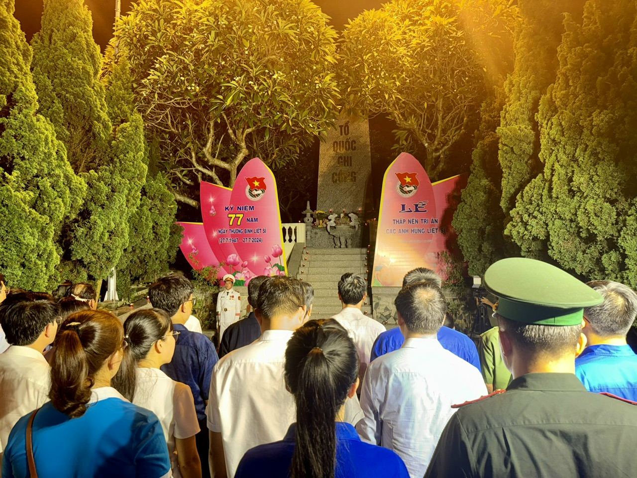 ĐTN: Tối 26/7, tại Nghĩa trang liệt sĩ tỉnh, Tỉnh đoàn, Hội Cựu chiến binh tỉnh, Sở LĐTB&XH, Bộ CHQS tỉnh, Bộ Chỉ huy BĐBP tỉnh long trọng tổ chức Lễ dâng hương, thắp nến tri ân các Anh hùng liệt sĩ nhân kỷ niệm 77 năm Ngày Thương binh - Liệt sĩ (27/7/1947 - 27/7/2024).