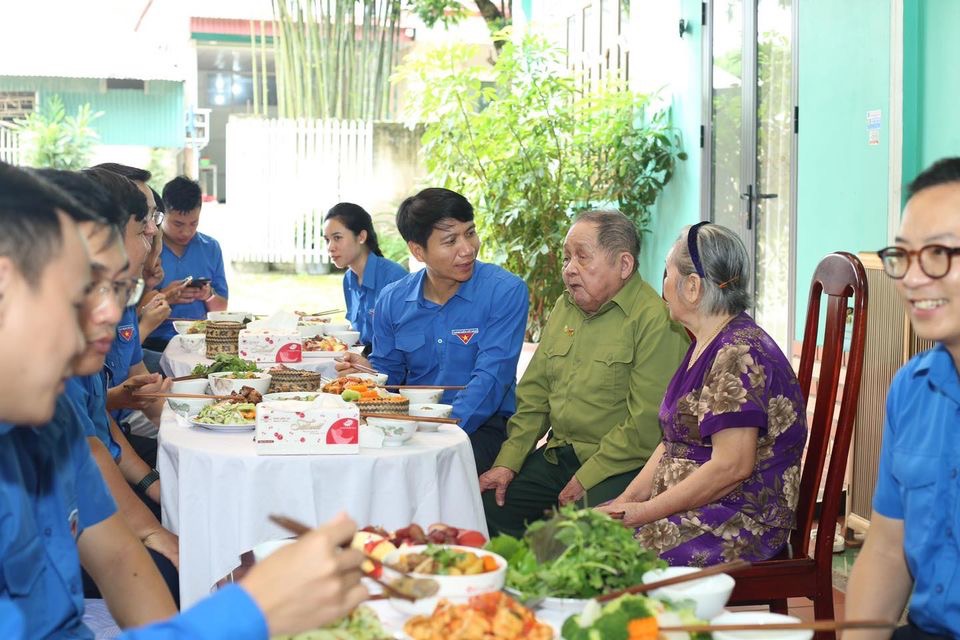 ĐTN: Trong khuôn khổ hoạt động kỷ niệm 77 năm Ngày thương binh liệt sĩ, trưa ngày 27/7, Bí thư thường trực Trung ương Đoàn, Chủ tịch Trung ương Hội LHTN Việt Nam cùng đoàn công tác đã tới thăm, tặng quà và cùng ăn “Bữa cơm sum vầy, ấm áp yêu thương” tại nhà Chiến sĩ Điện Biên Nguyễn Hữu Chấp (Tổ 20, phường Him Lam, TP. Điện Biên Phủ).