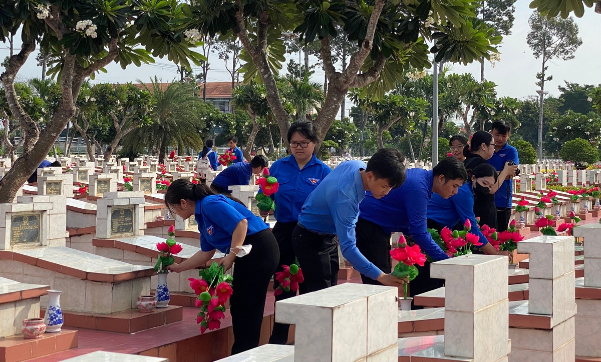 Tuổi trẻ Long An dâng hơn 25 ngàn đóa hoa lên mộ liệt sĩ