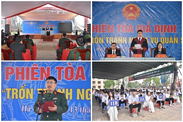 ĐTN: Sáng 13/1, tại Trường THPT Thành Sen (TP Hà Tĩnh), Toà án Quân sự Quân khu 4, Viện Kiểm sát Quân sự Quân khu 4 phối hợp với Bộ CHQS tỉnh và Tỉnh đoàn Hà Tĩnh tổ chức phiên toà giả định về tội “Trốn tránh nghĩa vụ quân sự”.