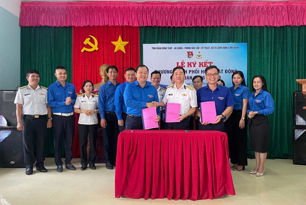 ĐTN: Từ 18-20/01, tại TP Phú Quốc (tỉnh Kiên Giang), Đoàn công tác của tỉnh đoàn Đồng Tháp và Tỉnh đoàn An Giang do đồng chí Huỳnh Minh Thức - Bí thư Tỉnh đoàn Đồng Tháp và đồng chí Phan Duy Bằng - Bí thư Tỉnh đoàn An Giang làm trưởng đoàn đã đến thăm, chúc Tết và ký kết chương trình phối hợp với Phòng Hậu cần -Kỹ thuật Vùng 5 Hải quân giai đoạn 2023 - 2028.