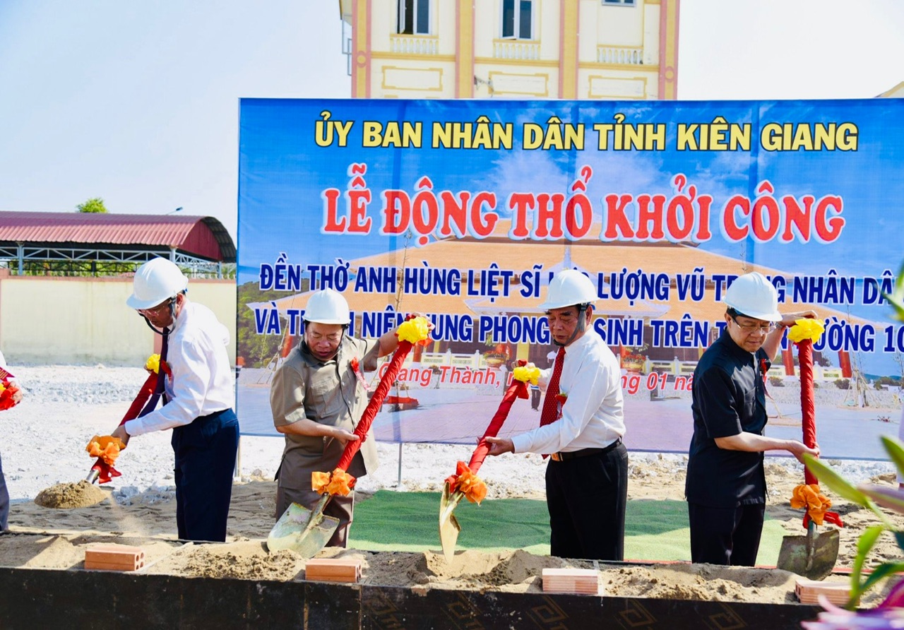 ĐTN: Ngày 8/01, Uỷ ban Nhân dân tỉnh Kiên Giang tổ chức Lễ động thổ khởi công xây dựng Đền thờ Anh hùng liệt sĩ lực lượng vũ trang nhân dân và Thanh niên xung phong hy sinh trên tuyến đường 1C tại huyện Giang Thành (Kiên Giang).