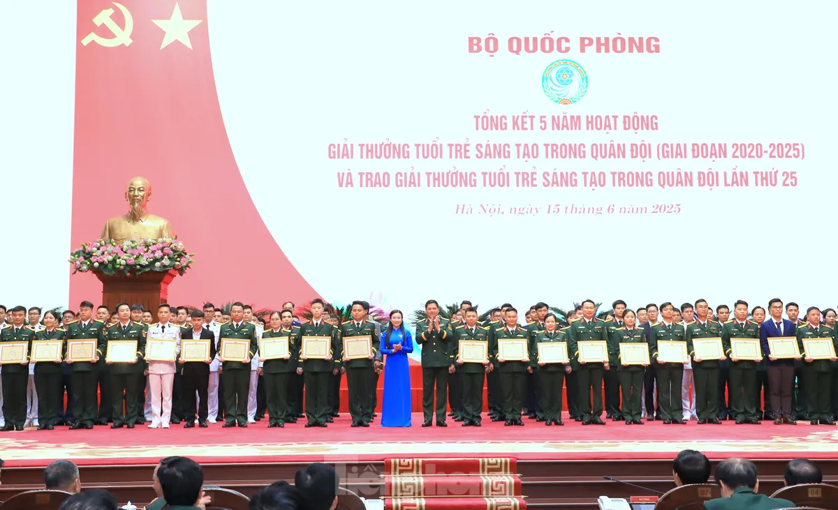 ĐTN: Ngày 15/6, tại Hà Nội, Bộ Quốc phòng tổ chức tổng kết 5 năm hoạt động Giải thưởng Tuổi trẻ sáng tạo trong quân đội, giai đoạn 2020 - 2025 và trao Giải thưởng Tuổi trẻ sáng tạo trong quân đội lần thứ 25.