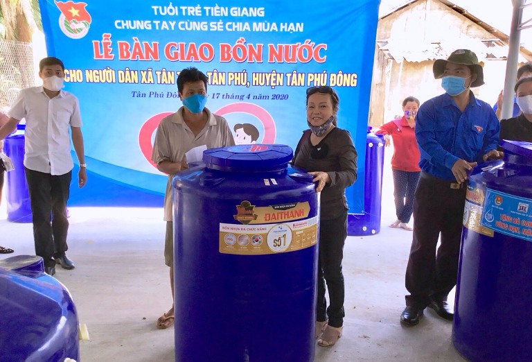 Web.ĐTN: Ngày 06/4/2020, Tỉnh Đoàn Tiền Giang phối hợp Báo Tuổi trẻ tổ chức Chương trình Trao bồn chứa nước và nhu yếu phẩm cho bà con khó khăn vùng hạn mặn.