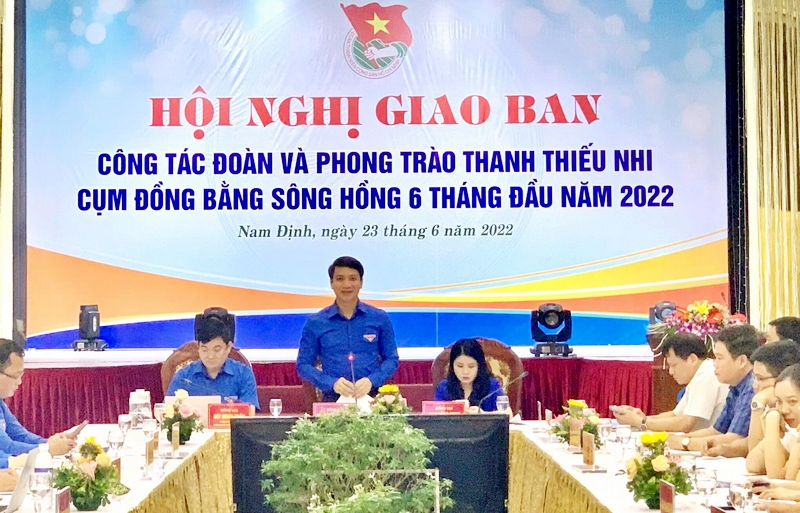 ĐTN: Ngày 23/6, tại tỉnh Nam Định, Trung ương Đoàn TNCS Hồ Chí Minh đã tổ chức hội nghị giao ban công tác Đoàn và phong trào thanh thiếu nhi 6 tháng đầu năm 2022 cụm Đồng bằng sông Hồng gồm 8 tỉnh, thành phố: Hà Nội, Hải Dương, Hải Phòng, Thái Bình, Hưng Yên, Ninh Bình, Hà Nam và Nam Định.