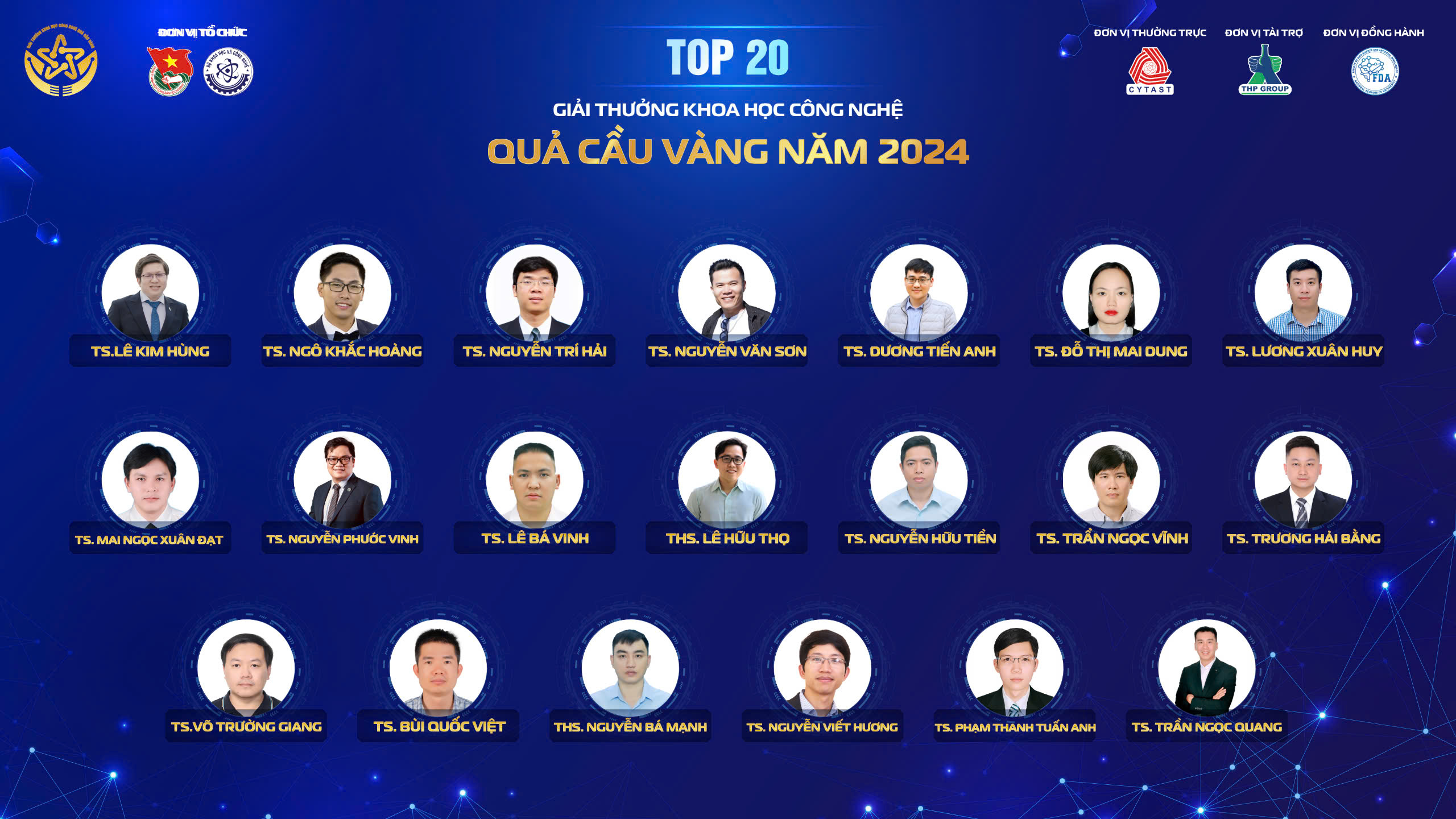 ĐTN: Ngày 20/9, Trung ương Đoàn TNCS Hồ Chí Minh công bố Top 20 Giải thưởng Khoa học công nghệ Quả Cầu Vàng năm 2024. Trong số 20 tài năng khoa học trẻ Quả Cầu Vàng 2024, có 18 tiến sĩ, 2 thạc sĩ.