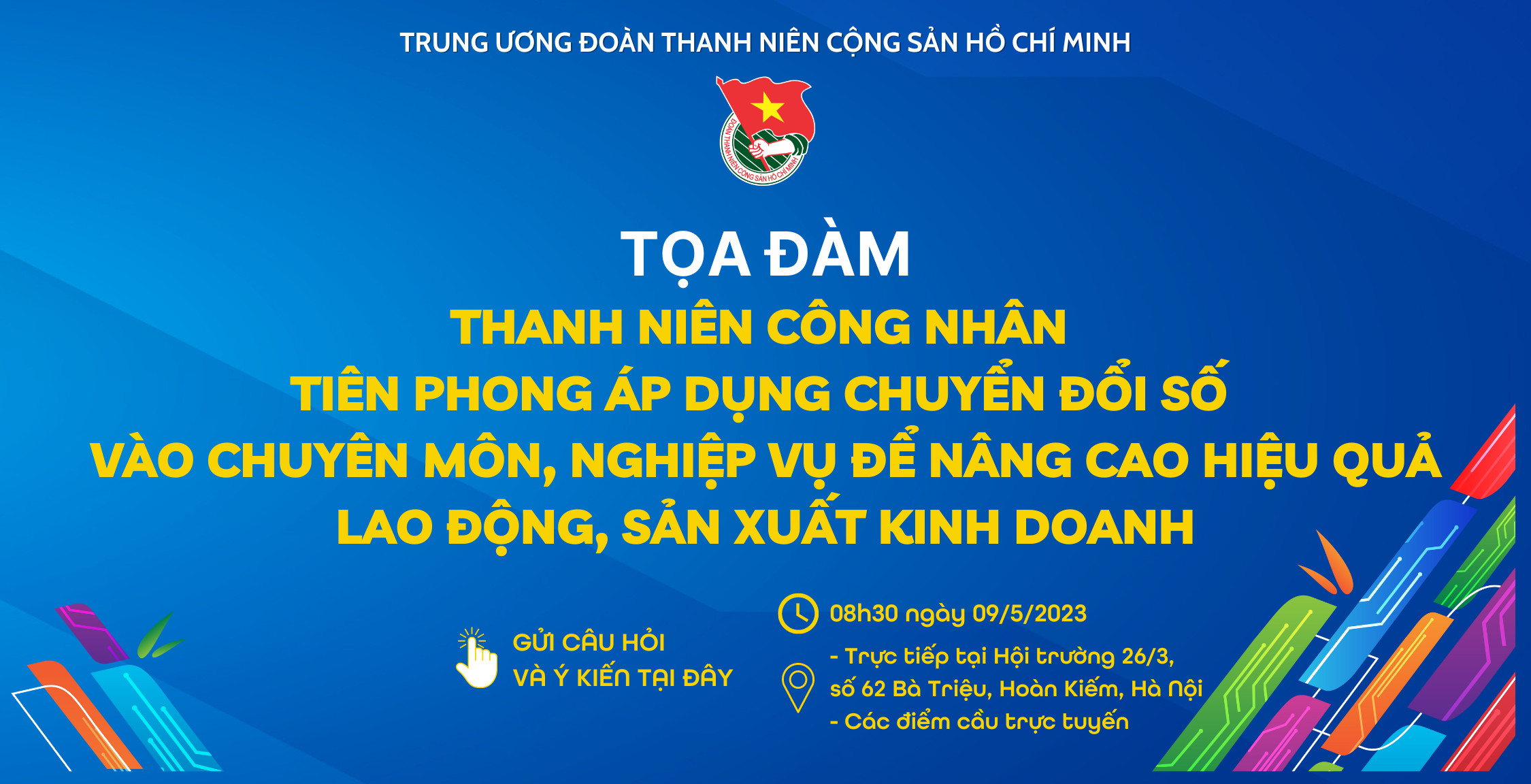 ĐTN: Trong khuôn khổ Giải thưởng “Người thợ trẻ giỏi” toàn quốc lần thứ XIV, năm 2023 nhằm hưởng ứng Tháng công nhân năm 2023, Trung ương Đoàn tổ chức Tọa đàm "Thanh niên Công nhân tiên phong áp dụng chuyển đổi số vào chuyên môn, nghiệp vụ để nâng cao hiệu quả lao động, sản xuất kinh doanh”.