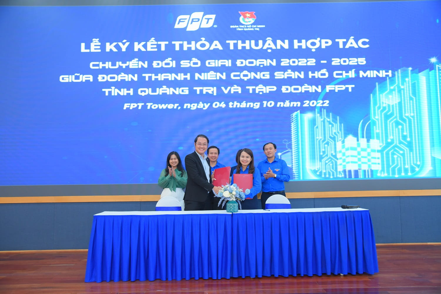 ĐTN: Ngày 04/10, tại Hà Nội, FPT và Tỉnh Quảng trị đã ký kết thỏa thuận hợp tác chuyển đổi số đến năm 2025 nhằm đẩy mạnh vai trò xung kích của Đoàn viên, thanh niên tỉnh Quảng Trị trong hoạt động chuyển đổi số thúc đẩy phát triển kinh tế số, xã hội số, chính phủ số trên địa bàn tỉnh.