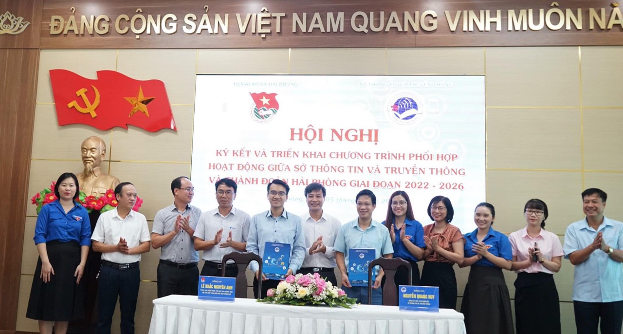 ĐTN: Ngày 5/7, Thành đoàn Hải Phòng phối hợp với Sở Thông tin và Truyền thông tổ chức Hội nghị ký kết Chương trình phối hợp hoạt động giữa Thành đoàn Hải Phòng với Sở Thông tin và Truyền thông giai đoạn 2022 - 2026.
