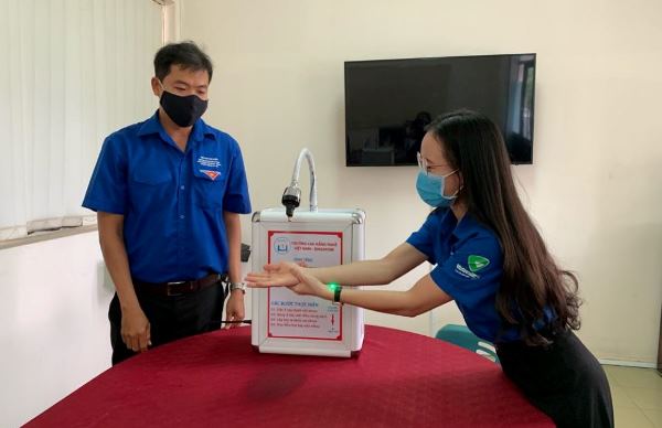 Sinh viên trường nghề chế tạo máy rửa tay sát khuẩn tự động