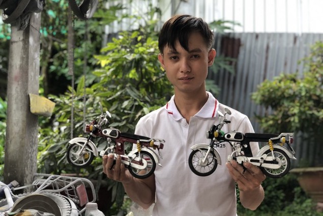 Chàng trai Lê Tấn Phát (20 tuổi), ngụ tại ấp Mỹ Giang, xã Thoại Giang, huyệnThoại Sơn, An Giang, đã thể hiện nghị lực và sự sáng tạo của người khuyết tật khi làm ra những chiếc xe mô hình độc đáo từ phế liệu.