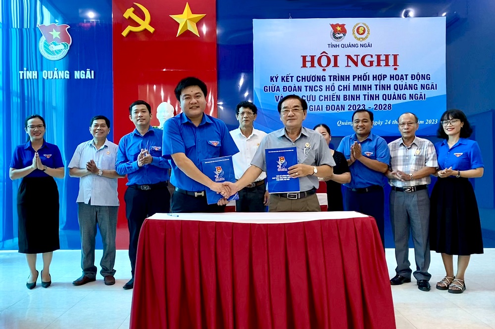 ĐTN: Chiều 24/8, Tỉnh đoàn Quảng Ngãi và Hội Cựu chiến binh tỉnh tổ chức tổng kết Chương trình phối hợp hoạt động giữa hai đơn vị giai đoạn 2018 - 2023 và triển khai Ký kết chương trình phối hợp hoạt động giai đoạn 2023 – 2028 về “Tăng cường bồi dưỡng lý tưởng cách mạng, đồng hành với thanh niên khởi nghiệp, lập nghiệp, xung kích xây dựng và bảo vệ Tổ quốc”.