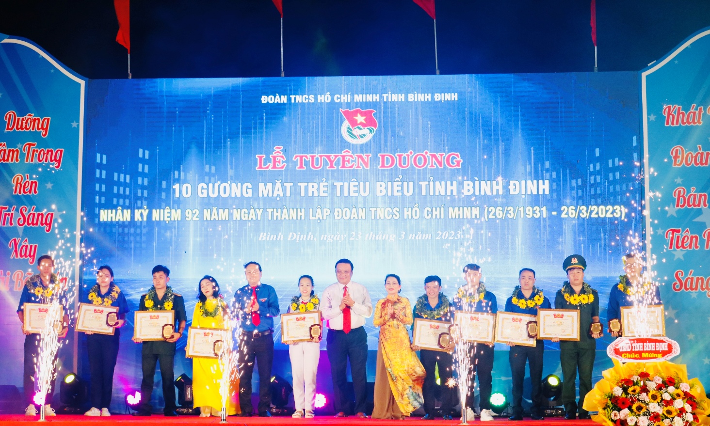 ĐTN: Tối ngày 23/3/2023, tại Quảng trường Nguyễn Tất Thành - TP Quy Nhơn, Ban Thường vụ Tỉnh đoàn tổ chức Lễ tuyên dương 10 gương mặt trẻ tiêu biểu tỉnh Bình Định nhân kỷ niệm 92 năm Ngày thành lập Đoàn TNCS Hồ Chí Minh (26/3/1931 - 26/3/2023).