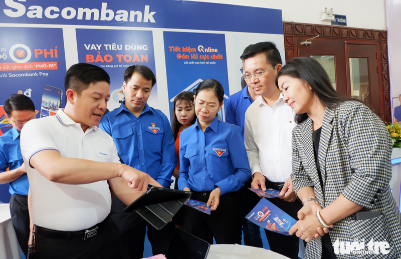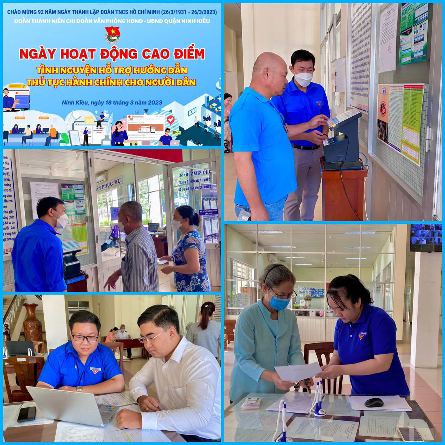 Ngày hoạt động cao điểm tình nguyện hỗ trợ người dân thực hiện dịch vụ công trực tuyến, tuyên truyền xây dựng văn hóa công vụ, sử dụng tài khoản thanh toán điện tử được Thành Đoàn TP.HCM tổ chức tại huyện Bình Chánh (TP.HCM) hôm nay 18/3.