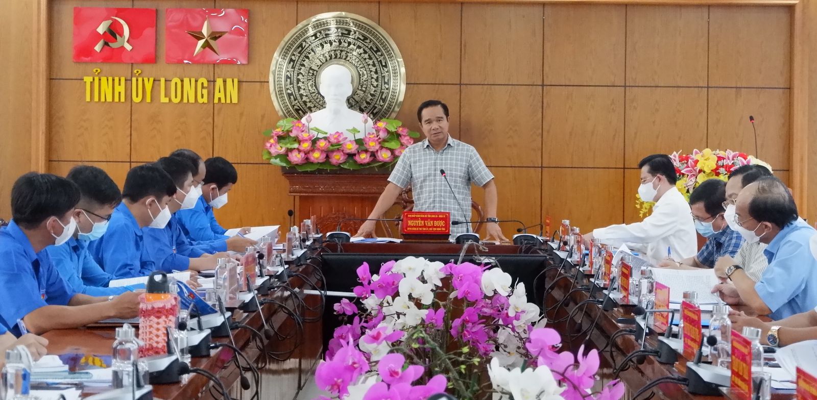 ĐTN: Chiều 31/3, Ban Thường vụ Tỉnh ủy có cuộc làm việc với Ban Thường vụ Tỉnh đoàn Long An về tình hình thực hiện công tác Đoàn và phong trào thanh, thiếu nhi năm 2021 và định hướng một số nhiệm vụ trọng tâm năm 2022. Bí thư Tỉnh ủy, Chủ tịch HĐND tỉnh Nguyễn Văn Được chủ trì cuộc làm việc.