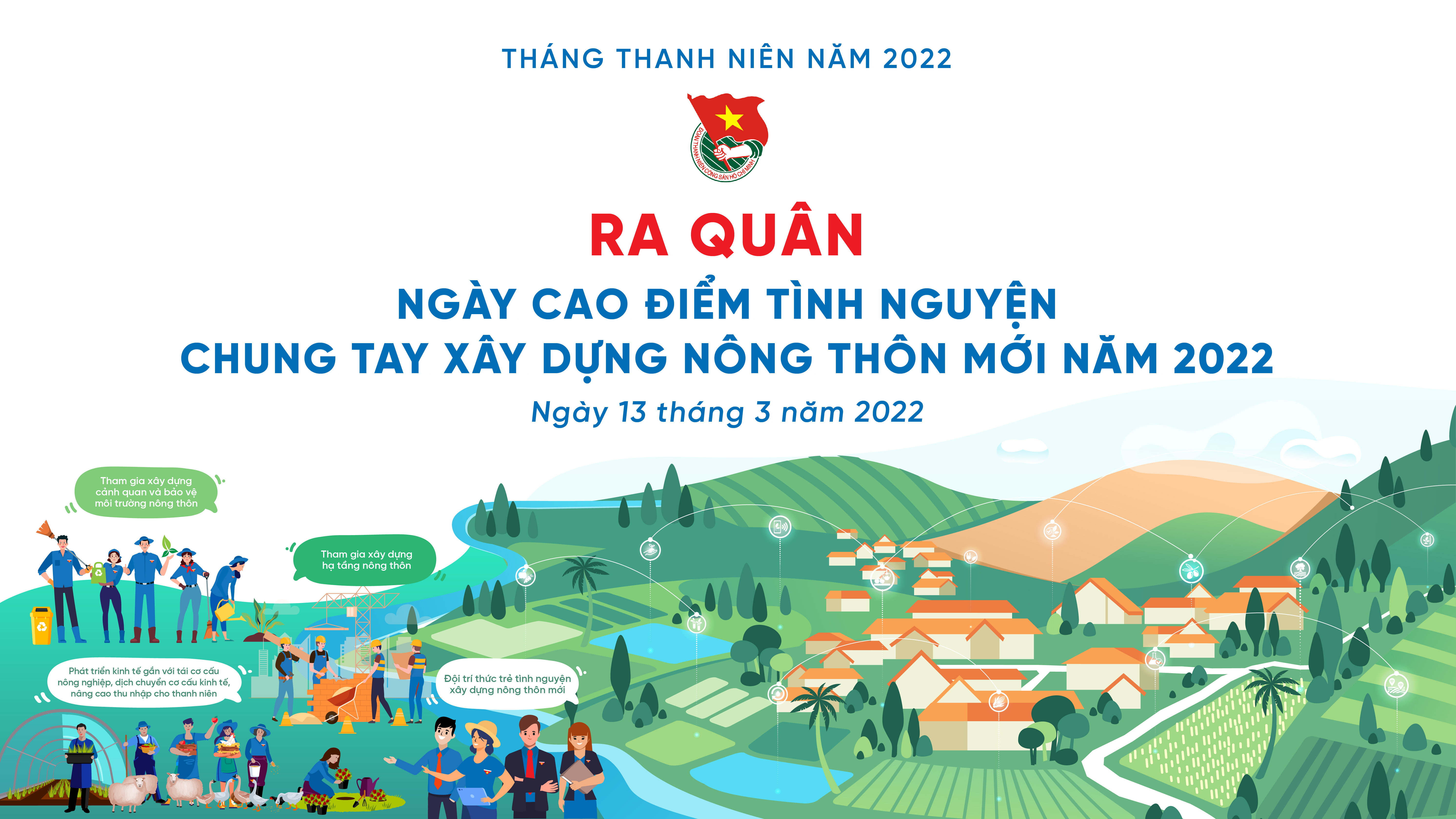 ĐTN: Ngày 13/3, các cấp bộ Đoàn trên cả nước sẽ đồng loạt triển khai Ngày cao điểm tình nguyện chung tay xây dựng nông thôn mới năm 2022, trong đó hoạt động cấp Trung ương diễn ra tại 04 tỉnh: Sơn La, Thái Bình, Quảng Ngãi, Long An.