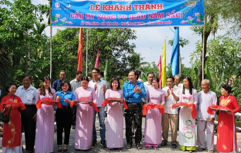 Web.ĐTN: Ngày 14/3, Tỉnh đoàn, Ủy ban Hội LHTN Việt Nam tỉnh Đồng Tháp phối hợp Quỹ Hy vọng (Hope Foundation) đã khánh thành 04 cây cầu Hy vọng ở địa bàn hai huyện Lấp Vò và Lai Vung.