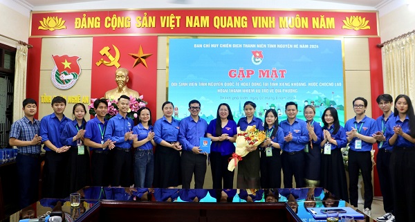 ĐTN: Sáng 07/8/2024, Ban Thường vụ Tỉnh đoàn Nghệ An, Ban Chỉ huy Chiến dịch Thanh niên tình nguyện Hè năm 2024 tổ chức Chương trình gặp mặt đội sinh viên tình nguyện Quốc tế hoạt động tại tỉnh Xiêng Khoảng, nước Cộng hoà dân chủ nhân dân Lào hoàn thành nhiệm vụ trở về địa phương.