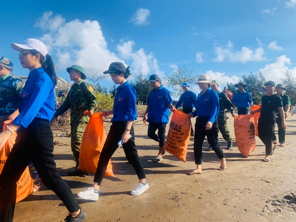 Đoàn viên, thanh niên, chiến sĩ cùng nhau làm sạch biển
