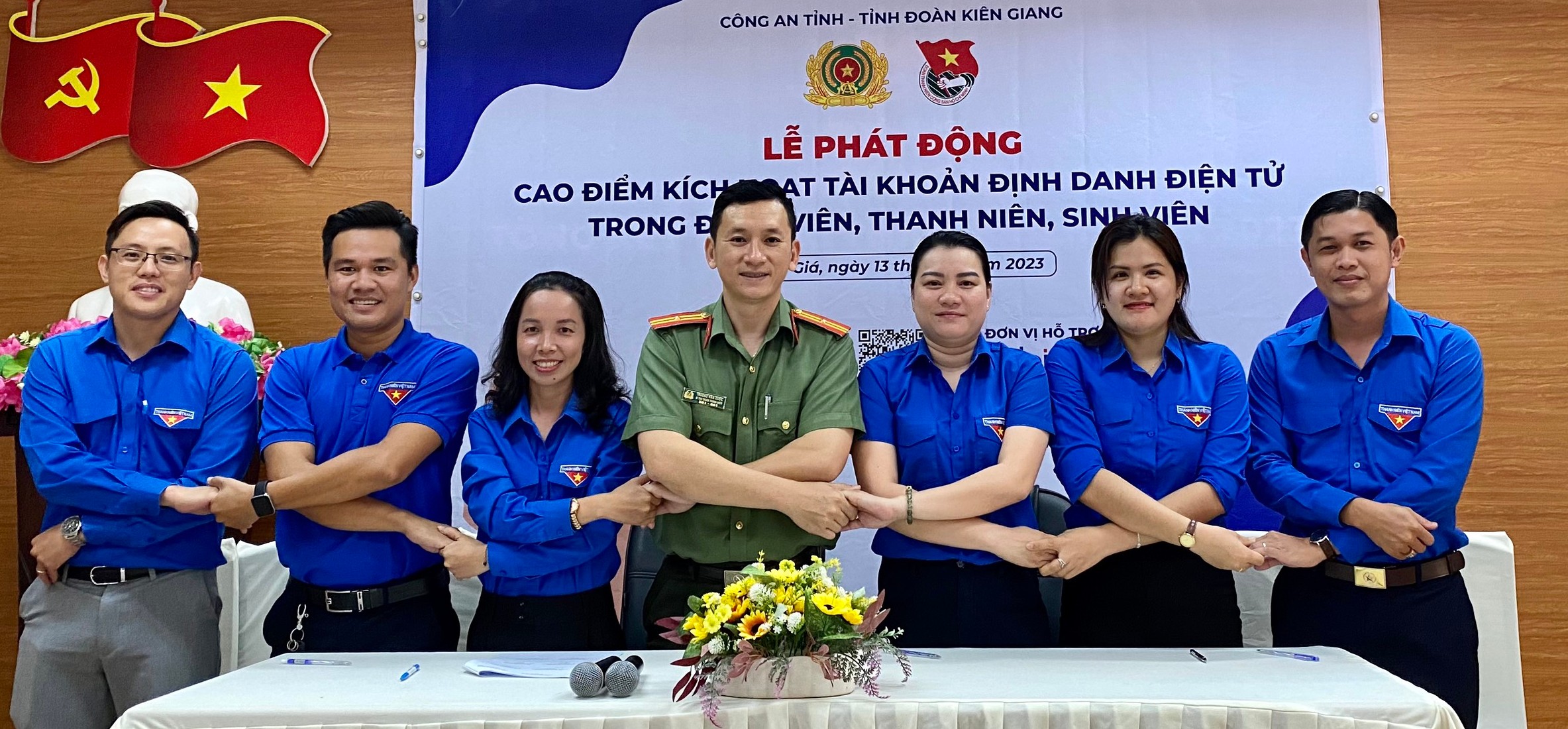 ĐTN: Ngày 13/04, Tỉnh đoàn và Công an tỉnh tổ chức Lễ phát động và ký kết cao điểm tuyên truyền, kích hoạt tài khoản định danh điện tử trong đoàn viên, thanh niên, sinh viên trên địa bàn tỉnh Kiên Giang.