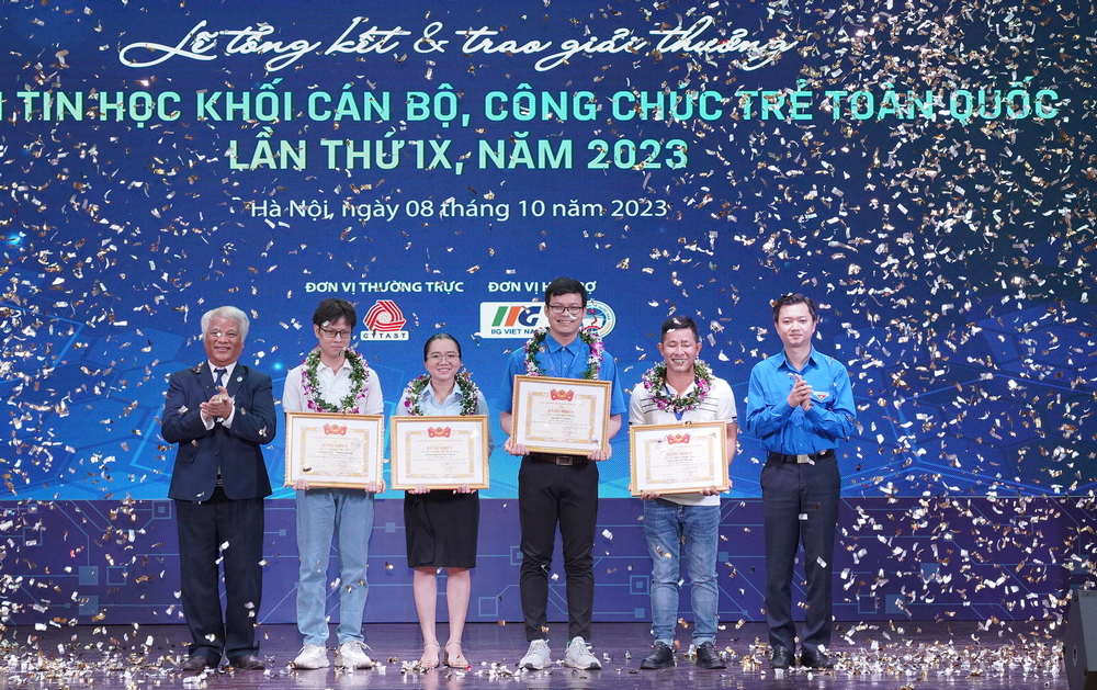 ĐTN: Sáng 8/10, tại trường Đại học Kinh tế Quốc dân (Hà Nội) đã diễn ra lễ tổng kết, trao giải thưởng Hội thi Tin học khối cán bộ, công chức trẻ toàn quốc lần thứ IX, năm 2023. Từ 150 thí sinh tham dự vòng chung kết toàn quốc, Ban tổ chức tuyên dương và trao 4 giải Nhất, 12 giải Nhì, 17 giải Ba, 33 giải Khuyến khích của Hội thi.