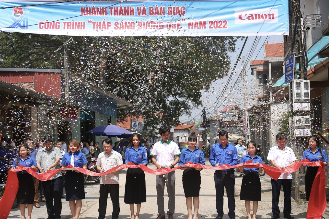 ĐTN: Ngày 18/9, tại thôn Mỏ Thổ, xã Minh Đức, huyện Việt Yên (Bắc Giang); Ban Thường vụ Tỉnh đoàn phối hợp với Công ty TNHH Canon Việt Nam tổ chức khánh thành và bàn giao Công trình “Thắp sáng đường quê” năm 2022.