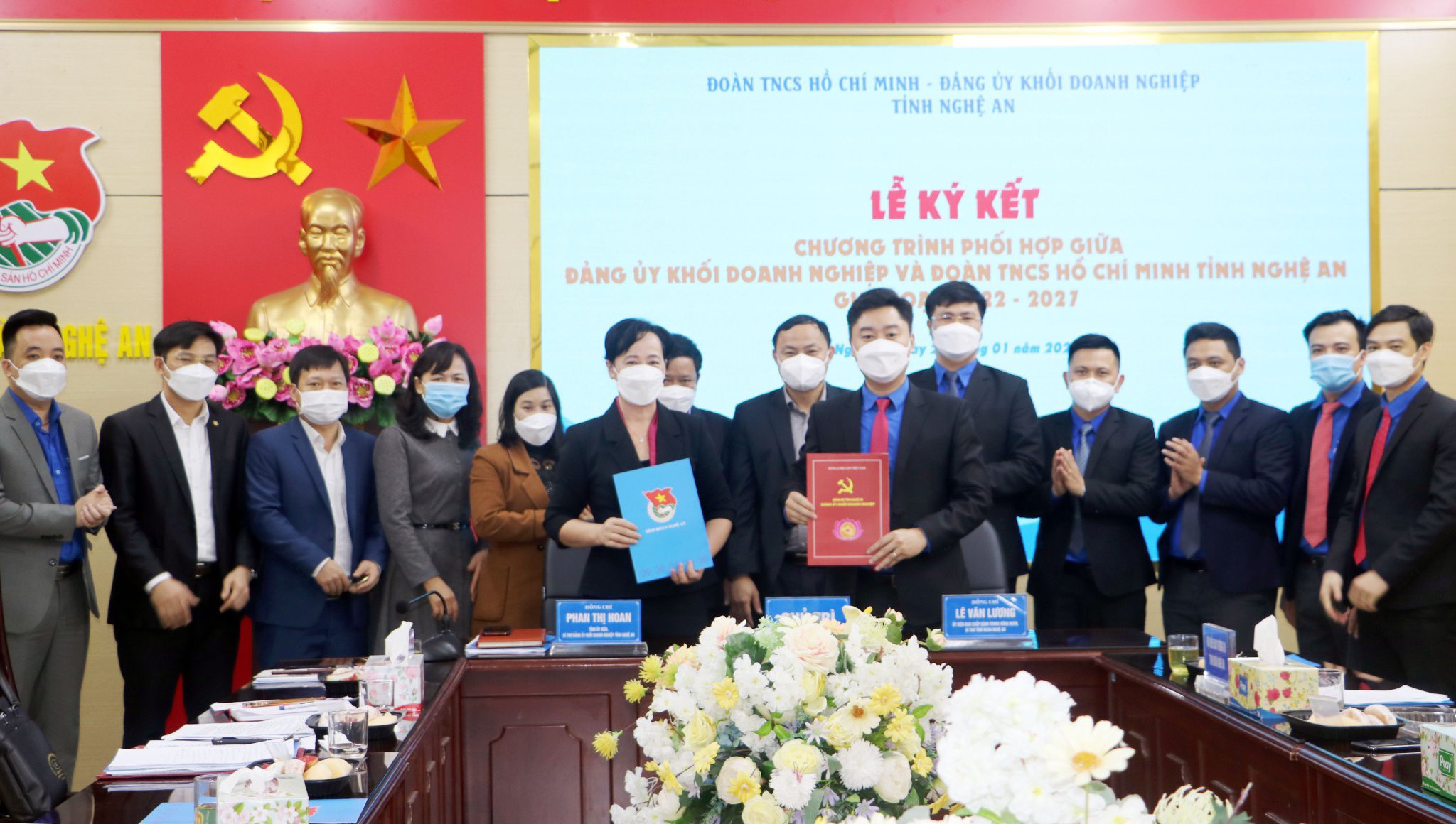 Nghệ An: Tỉnh đoàn và Đảng ủy Khối Doanh nghiệp tỉnh ký kết chương trình phối hợp giai đoạn 2022-2027